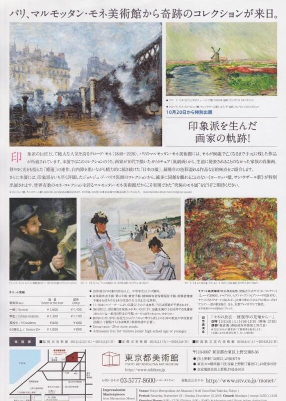 前期展示作品:印象、日の出(行けなくて見れなかった) 後期展示作品:ヨーロッパ橋、サン=ラザール駅(見れた)