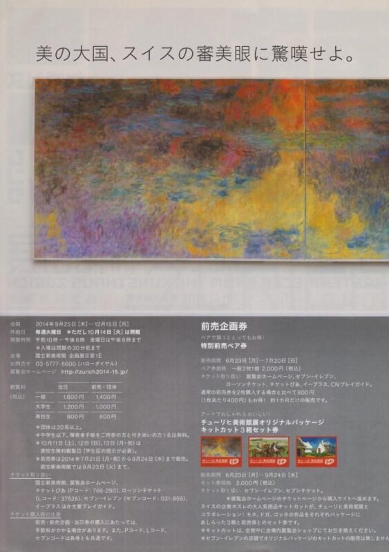 スイスのチューリヒ美術館で鑑賞してきたモネの「睡蓮の池・夕暮れ」をまた見ることができた。